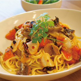 オイルサーディンとトマトのパスタ